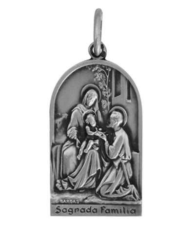 A medalha religiosa Sagrada Família, criada por renomados mestres ourives, retrata Jesus, Maria e José como modelo de amor, união e fé familiar. Um dos ícones mais universais da Igreja, é invocada como proteção das famílias cristãs. Esculpida pela tradição da ourivesaria portuguesa, transforma o lar e a espiritualidade numa joia de devoção.