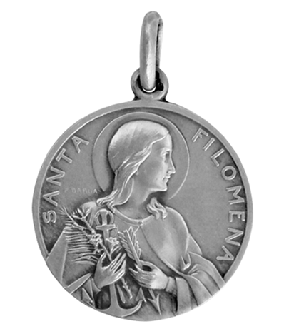 A medalha religiosa Santa Filomena, criada por renomados mestres ourives, apresenta a jovem mártir venerada como padroeira da pureza, das crianças e da juventude. Conhecida como “a taumaturga do século XIX”, a sua devoção espalhou-se rapidamente pela Europa. Esta peça da ourivesaria portuguesa mantém viva a fé e confiança na intercessão da santa.