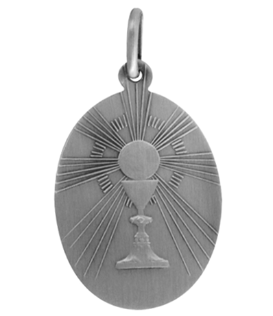 Na medalha Virgem Oval com Cálice, João da Silva apresenta Maria em ligação com a Eucaristia. O cálice simboliza o sangue de Cristo e o sacrifício redentor, que a Virgem acolhe em seu coração materno. Esta peça une a devoção mariana ao mistério central da fé católica, tornando-se um convite à contemplação da presença real de Cristo na liturgia.